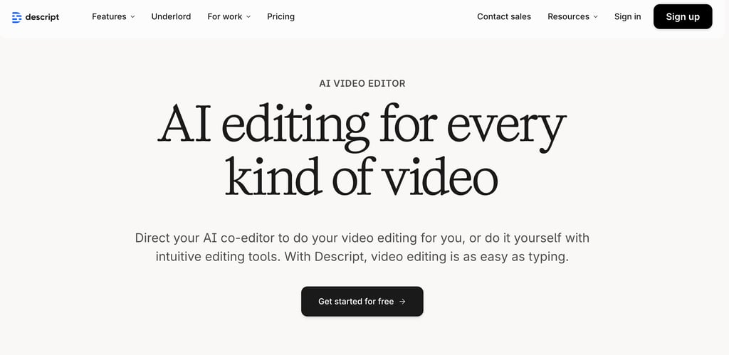 Descript is an AI-powered video and podcast editor that pioneered text-based video editing. Instead of working with a traditional timeline, Descript transcribes your content and presents it as an editable document. Delete a sentence from the transcript, and the audio and video are removed. Rearrange paragraphs, and the footage rearranges to match.