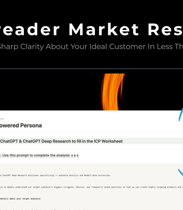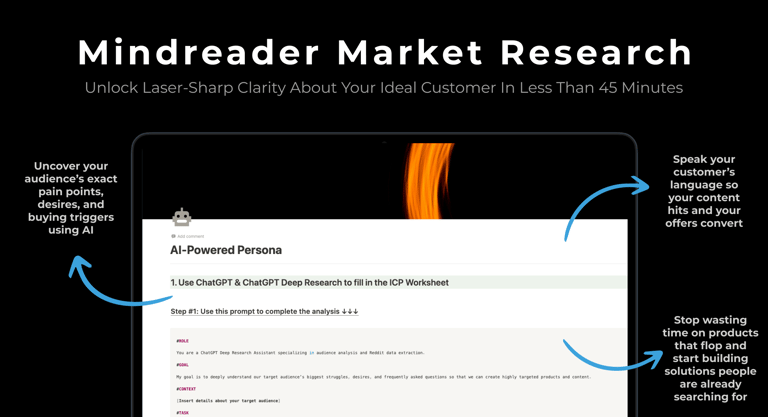 Why it's worth it: Most people skip market research because it feels overwhelming, or they just guess what their audience wants. This product turns the whole process into a 45-minute AI-powered workflow that gives you real, usable insights.