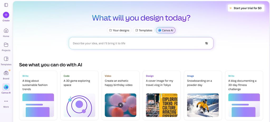 Magic Studio is Canva's suite of AI-powered tools built directly into the design platform. It's not a separate app — everything lives inside the same editor you already know. Think of it as an AI layer on top of Canva's existing template and design system.