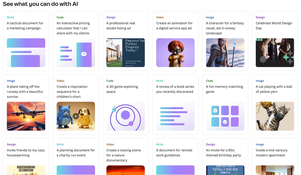 Magic Media — Text-to-image and text-to-video generation. Describe what you want to see and Canva creates it. Useful for custom visuals when stock photos don't cut it.