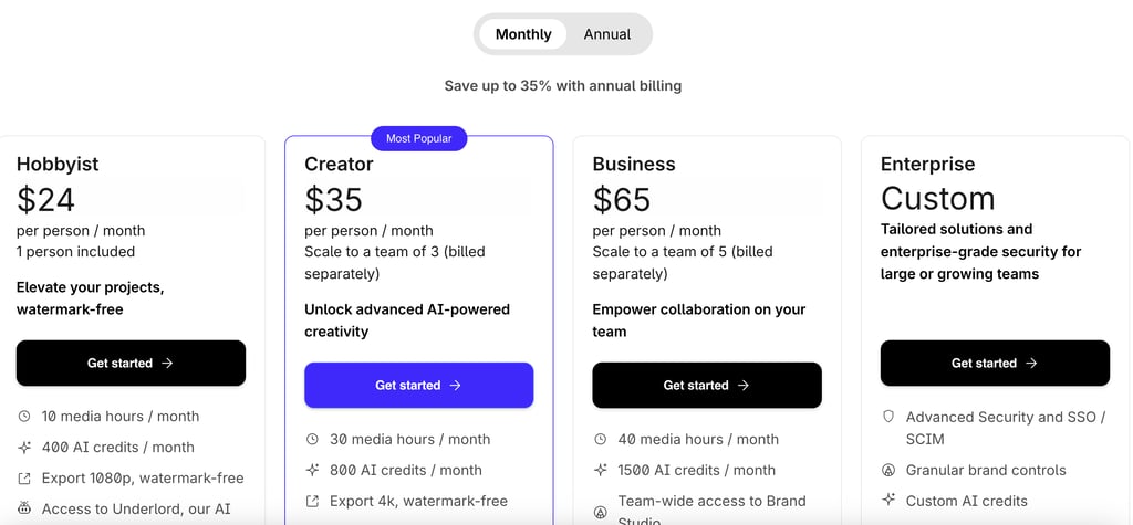 Creator plan ($35/mo) is perfect for: