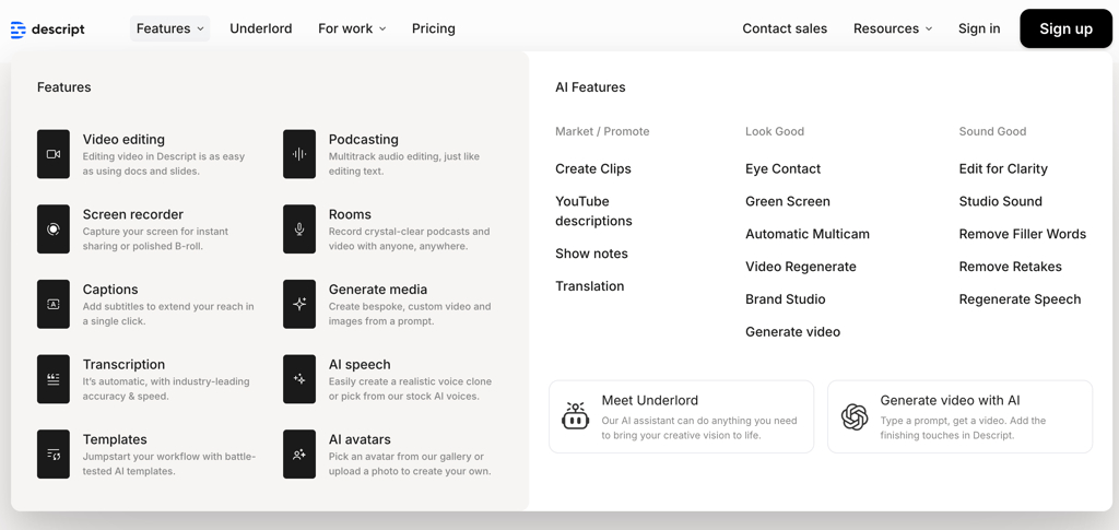 Descript is a text-based video and audio editor. Instead of editing on a traditional timeline, you edit the transcript — and the video updates automatically.