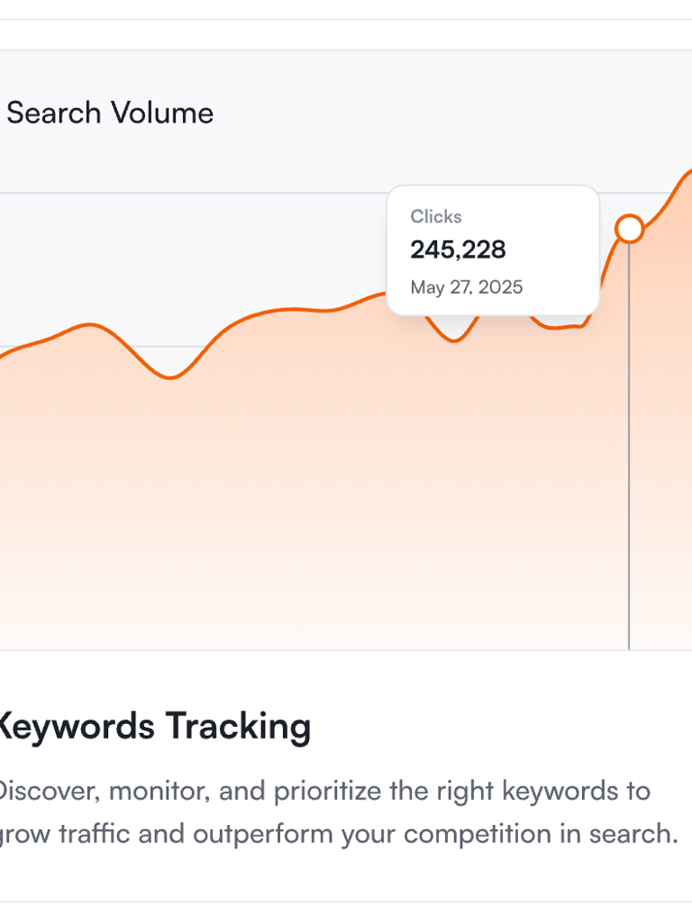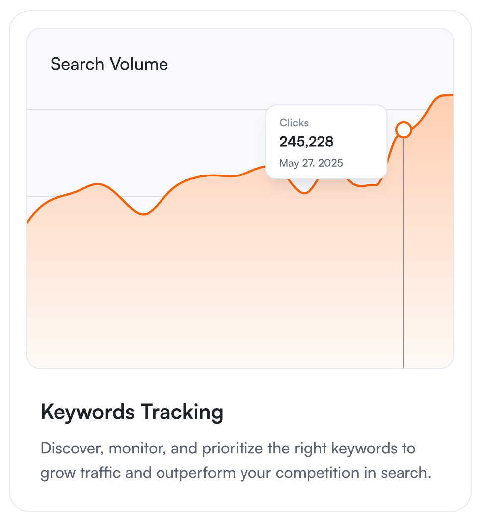 You can discover, monitor, and prioritize keywords across your niche. Opinly tracks your rankings over time and shows you keyword gaps — terms your competitors rank for that you don't. The data updates regularly so you can spot trends and react before your competitors do.