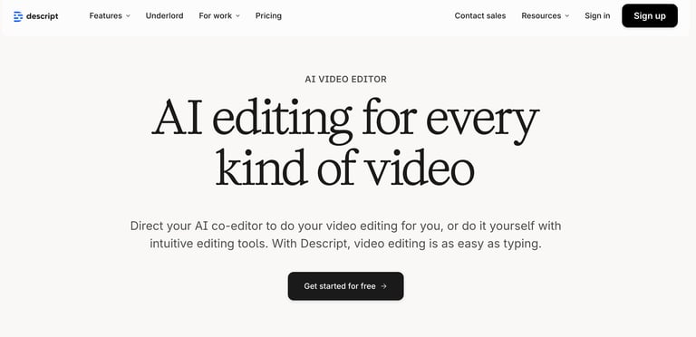 Descript is a video and podcast editor where you edit video by editing text. It transcribes your content, and then you cut, rearrange, and polish your video by working with the transcript like a document. It can also generate clips, but transcript editing is the core workflow, not automated clip generation.