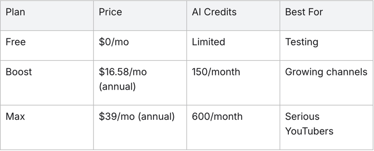If you're a beginner with under 1,000 subscribers, use the free plan for a few weeks, then decide if it's worth upgrading. You might be better off focusing on content quality first and optimization later.